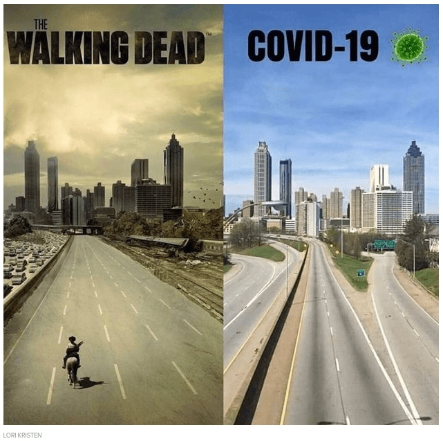 Mais je suis prêt. J’ai visionné en accéléré toute la dernière saison de The Walking Dead. Cette série américaine (d’horreur) raconte la vie d’un groupe de survivants dans un monde ravagé par une Népidémie qui transforme les Zêtres-vivants en Zombi(e)s. Avec Michonne, la jolie héroïne, je me suis entraîné au maniement du sabre. Je peux décapiter tous les Rôdeurs – c’est le nom des personnes infectées – susceptibles de me dévorer pendant que je vais chercher mon courrier.