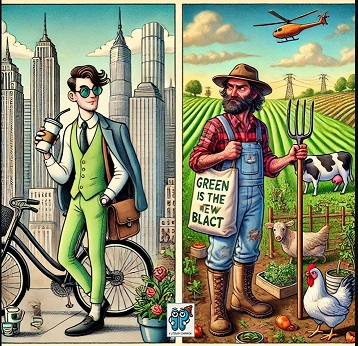 L’EKolo de Ville aime la campagne mais n’y vit pas. L’été, dans son bureau Bioclimatisé situé au bord des Champs, il imagine une nature bucolique, riche de ruches, d’oiseaux et de fleurs. Sirotant une citronnade à la lavande et aux graines de concombre issues d’une coopérative Bioéquitable des contreforts de l’Himalaya, il rêve de s’ébattre dans un Biotope Biodiversifié aux senteurs essentielles.