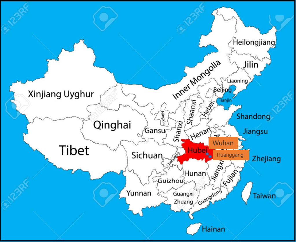 2 villes (Wuhan et Huanggang) : Wuhan (capitale) et Huanggang sont deux petites villes de la province de Hubei. 11,1 millions d’habitants pour l’une…7,5 millions d’habitants pour l’autre… Si on doit s’intéresser aux petites villes en plus…