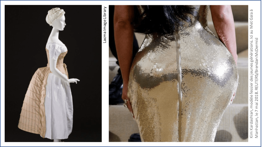 Jolies Tournures : la tournure est une manière de s’exprimer. En ce sens, c’est bien un élément de syntaxe enseigné par un(e) professeur(e) de Français. Mais Monsieur T est un coquin. La tournure est aussi un sous-vêtement très en vogue dans les années 1880. Placée sous le jupon juste en dessous de la taille, la tournure souligne la courbure des reins, aspect qui a sans doute consolidé le souvenir de la jolie Mademoiselle M… Il est à noter que la tournure justifie, par ses rembourrages, le terme de faux-cul, toujours très à la mode dans le monde politique du XXIème siècle.