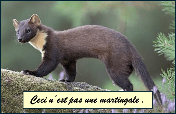 Martingale : N’est pas un petit animal des montagnes recherché pour sa fourrure mais une séquence de variables aléatoires ou une stratégie de mises aux jeux de hasard.