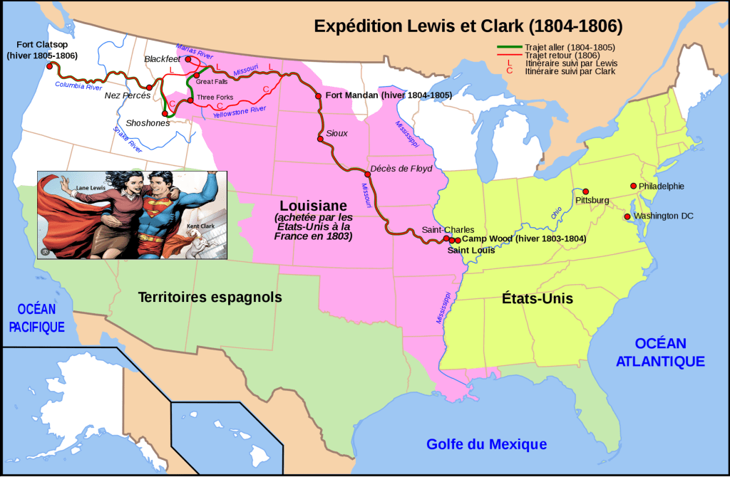 Lewis et Clark : L’expédition Lewis et Clark (1804-1806) est la première expédition terrestre américaine à traverser le futur territoire des États-Unis jusqu’à la côte Pacifique.